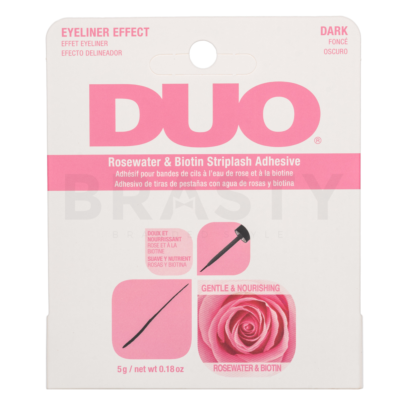 Ardell DUO Rosewater & Biotin Striplash Adhesive es un pegamento revolucionario para pestañas postizas que ofrece la combinación perfecta de fuerza y suavidad. La marca Ardell es conocida por sus productos innovadores en cosmética decorativa, y este pegamento no es una excepción. Con su ayuda, lograrás una aplicación perfecta de pestañas postizas que dura todo el día. Gracias a su tono oscuro, se integra fácilmente con tus pestañas naturales, creando un aspecto natural y sofisticado.