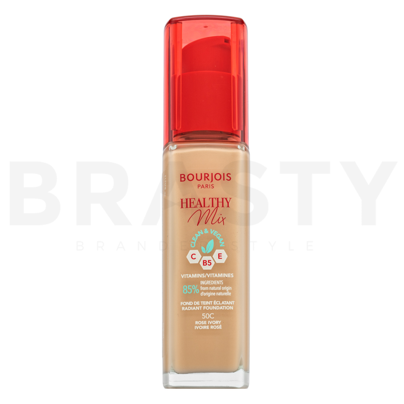 Bourjois Healthy Mix Clean & Vegan Radiant Foundation es un maquillaje líquido revolucionario que ofrece una unificación perfecta del tono de la piel. Este producto forma parte de la popular colección Healthy Mix, conocida por su enfoque en la salud y la belleza natural. El maquillaje en el tono 50C Rose Ivory es la elección ideal para mujeres con piel normal que buscan una cobertura ligera y un aspecto natural. Gracias a su fórmula vegana, es amable con la piel y el medio ambiente, lo que lo convierte en una excelente opción para el uso diario.